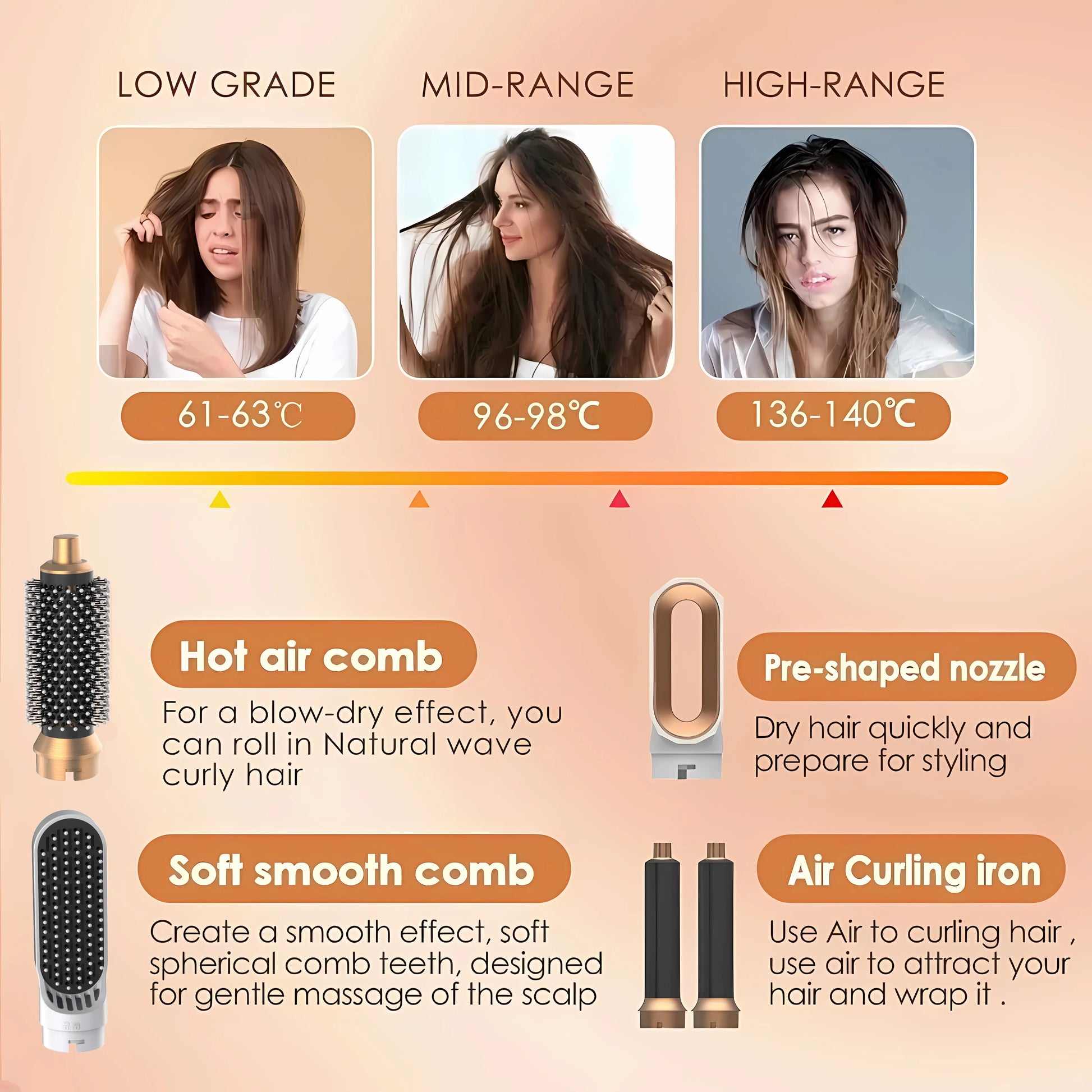 5-in-1 Hair Dryer Hot Air Comb: Versatile styling tool.