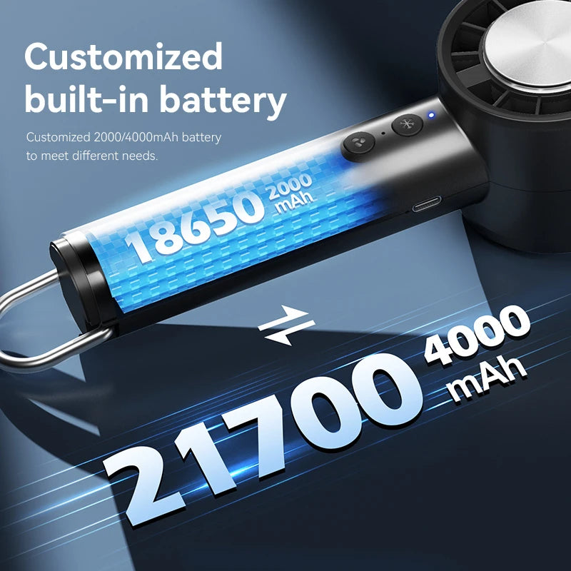 The portable electric fan is equipped with high-efficiency turbine technology to provide a strong wind experience. Users can adjust the wind speed precisely as needed, and the -5-speed wind adjustment meets the needs of different scenes, whether it is silent or strong wind, it can meet your needs.